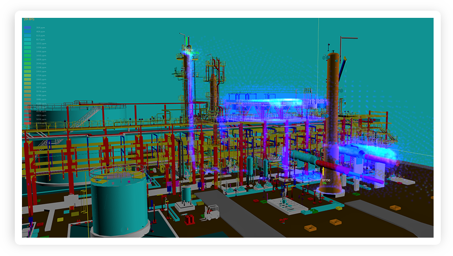 场景是由环境(Scene)定义和泄漏(Leak)定义所组成, 每一个场景下其环境和泄漏都是确定的, 因而其产生的气云云团也是确定的。每一个场景都有对应的气云分布, 我们可称为Cloud Mapping。GCV软件会罗列出所有可能的场景,并通过引入CFD技术对这些场景进行计算分析,模拟得出每个场景所对应的气云。